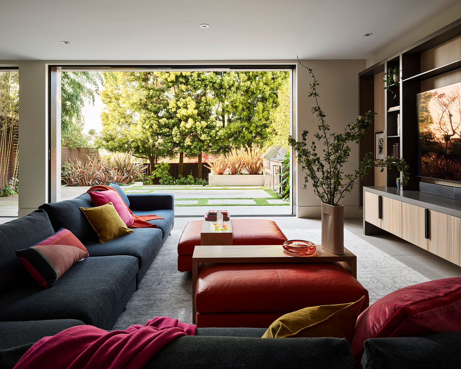 Drawing on their deep appreciation for modern architecture and travel, our clients envisioned a home where warmth and design could blend into a cozy sanctuary for their family. Their home, a testament to their creativity and worldly adventures, is a canvas imbued with bold colors and lively spirit.