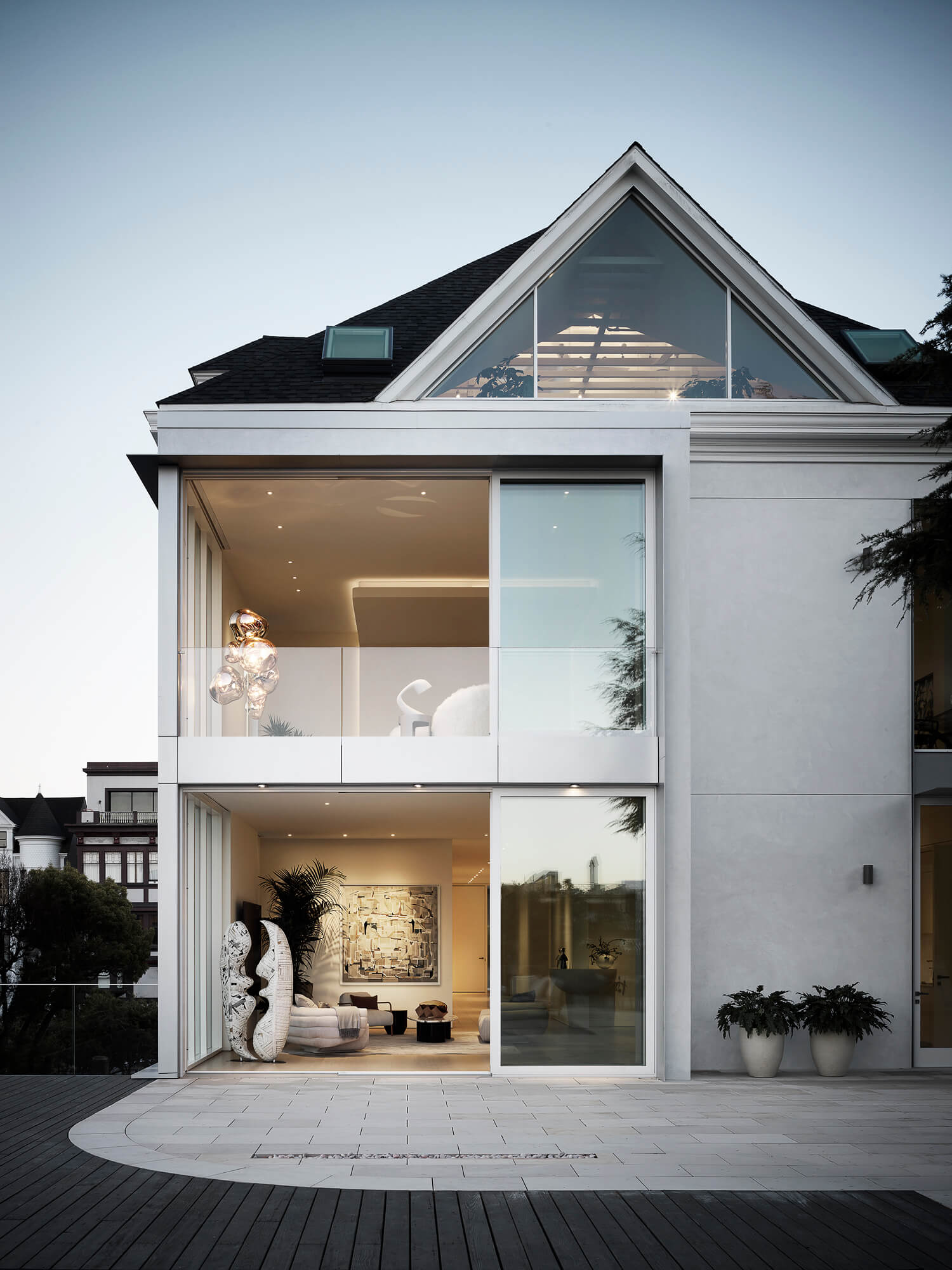 While the owners admired the original Queen Anne style of the home, they desired a minimalist, gallery-inspired interior for living. The clients, passionate about modern architecture, envisioned a contemporary space and an art gallery aesthetic. Alongside a major restoration effort, the team focused on a design approach that juxtaposed the old “artifact” with modern “insertions.”